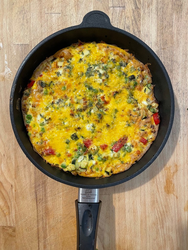 Mit einer Frittata bekommt man auch immer gut Gemüse verwertet, man kann Zucchini, Tomaten, Pilze, Paprika, Möhren und so weiter klein schnippeln, anbraten und mit Ei ummanteln. Fertig ist die Frittata.