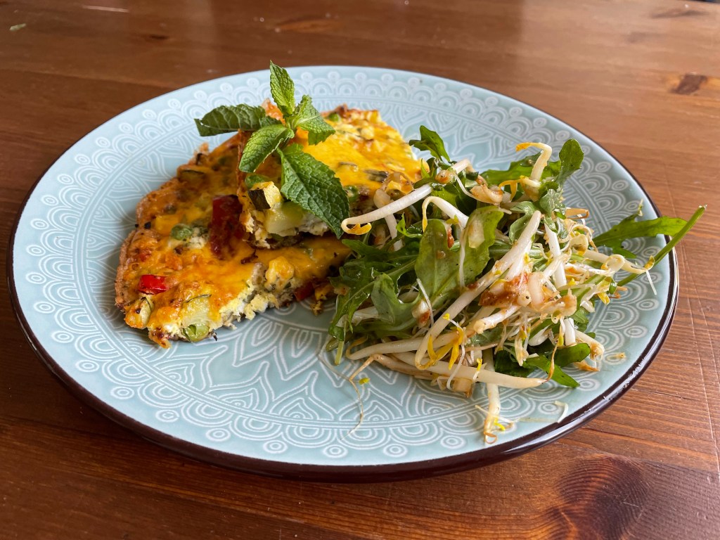 Gestern war wieder so ein Tag, an dem ich in den Kühlschrank geschaut habe und über deren Verwendung nachgedacht habe und mich für eine Frittata mit Salat entschieden habe.